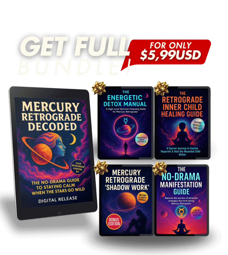 A complete 5-ebook spiritual toolkit that helps you navigate Mercury Retrograde with clarity, confidence, and inner peace, without fear, anxiety, or drama.